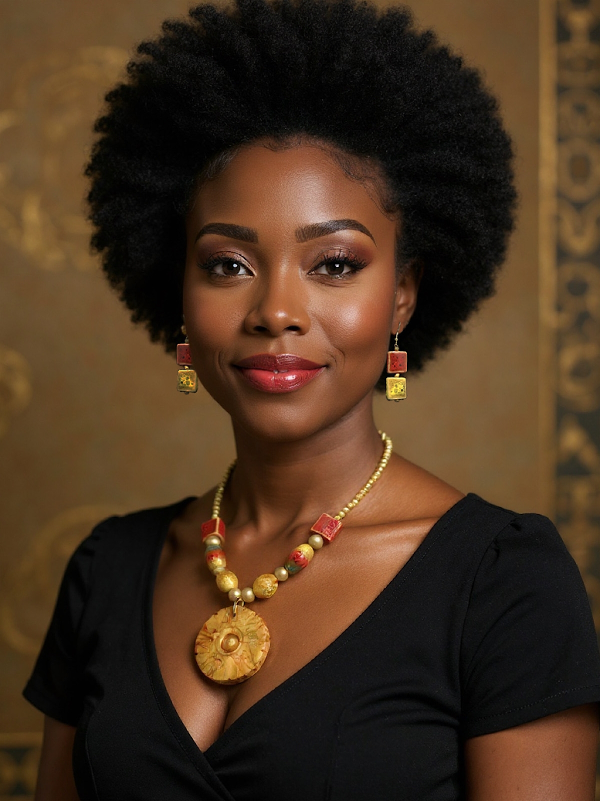 I wear the Egyptian Royalty 'Red' Necklace & Earrings (with Agate Stone) almost every day. It helps me to convey my pride at being part of Nubia-Kushitic-Kemetic civilization. The craftsmanship is top-notch. I love the arrangement of the stones, and the centerpiece of the necklace is the disc in the middle reminiscent of the sun. I feel like it's an artistic tribute to the Kemetic deity Ra. The earrings make me feel rather royal, even though my ancestors served the Kemetic kings.